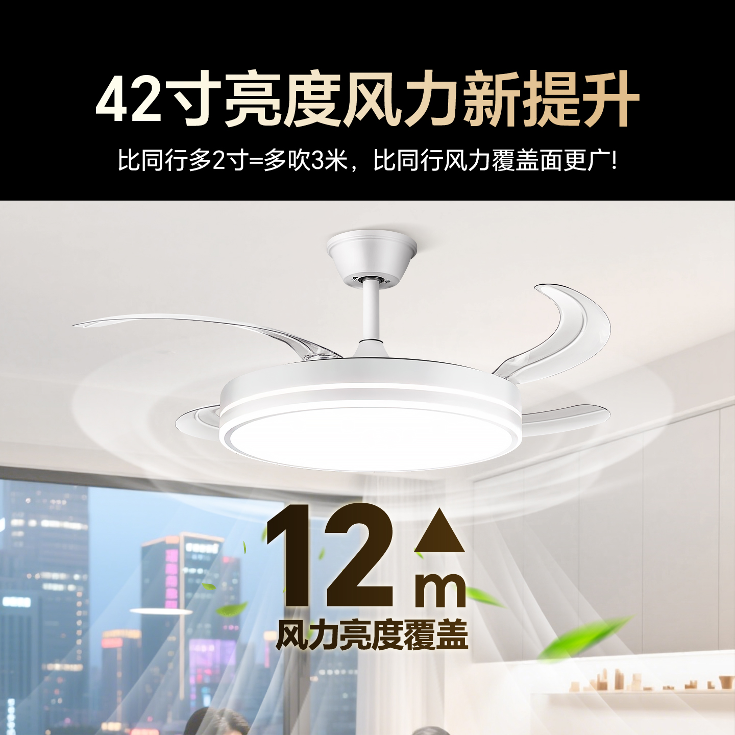 客厅餐厅吊灯电风扇吊扇灯熟睡风 隐形风扇灯2025新款 补贴15% 美