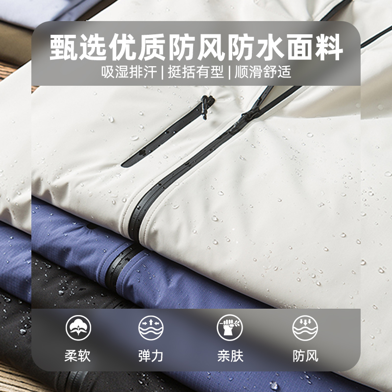 李宁软壳外套男秋季 连帽夹克户外登山防风防泼水上衣运动风衣 新款