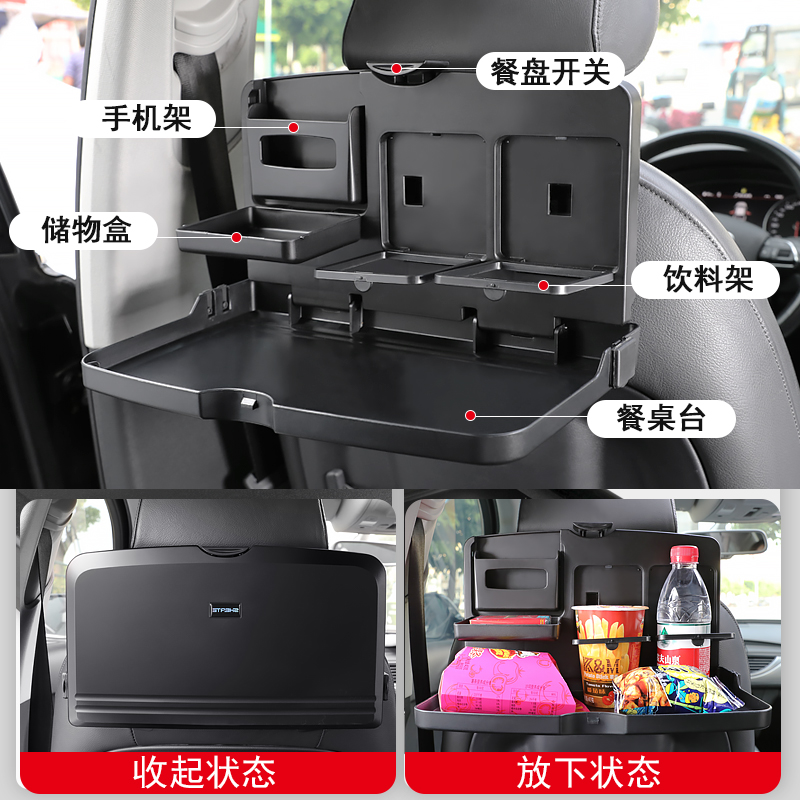 车载小桌板后排座椅多功能汽车餐桌可折叠收纳饭桌电脑笔记本支架