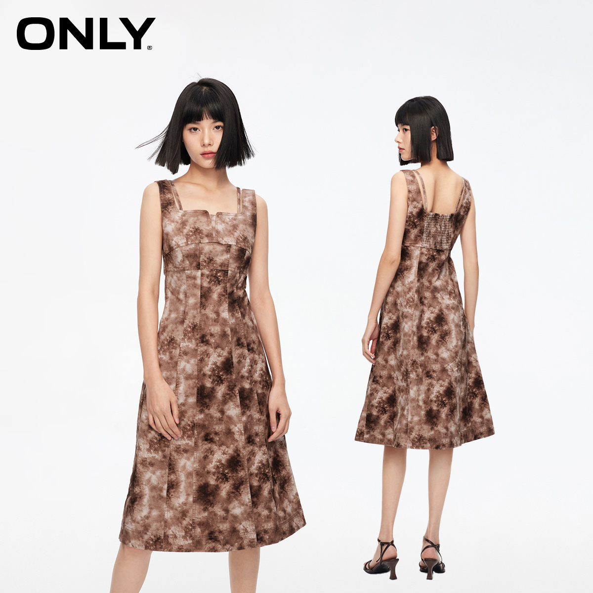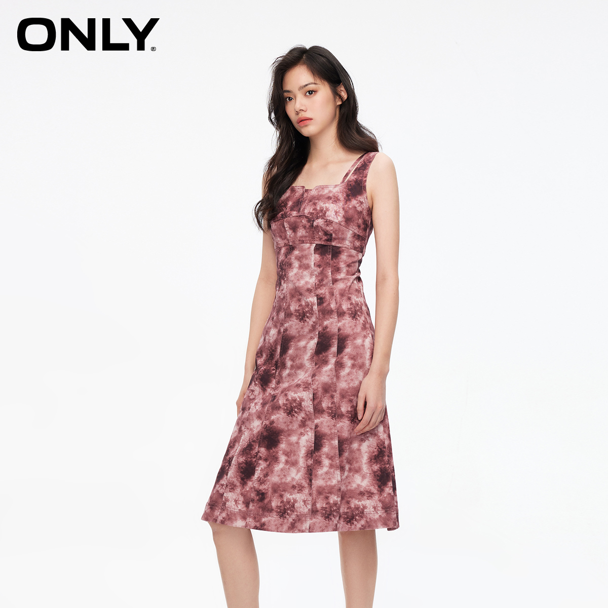 124107070 连衣裙女 ONLY夏季 设计感拼接捏褶高腰中长款
