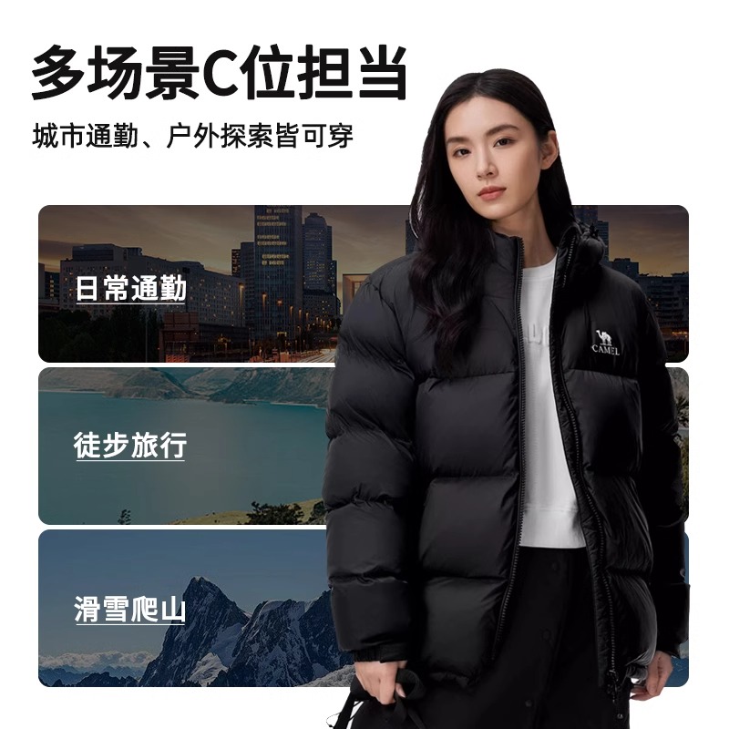 短款 今年流行爆款 休闲百搭面包服男 新款 骆驼户外羽绒服女2025冬季