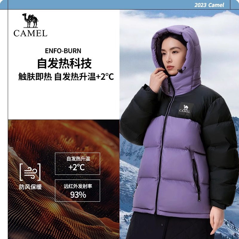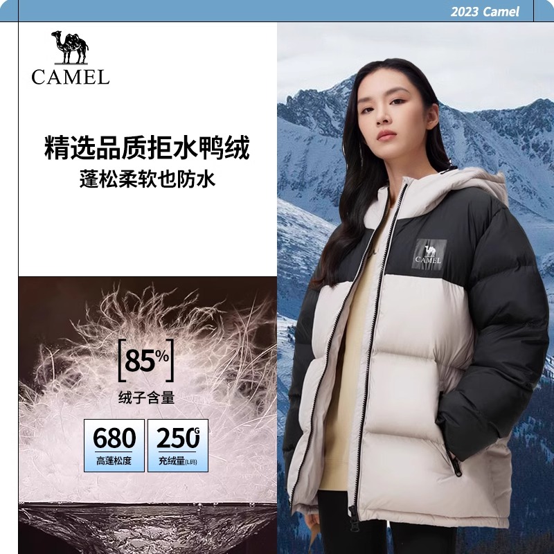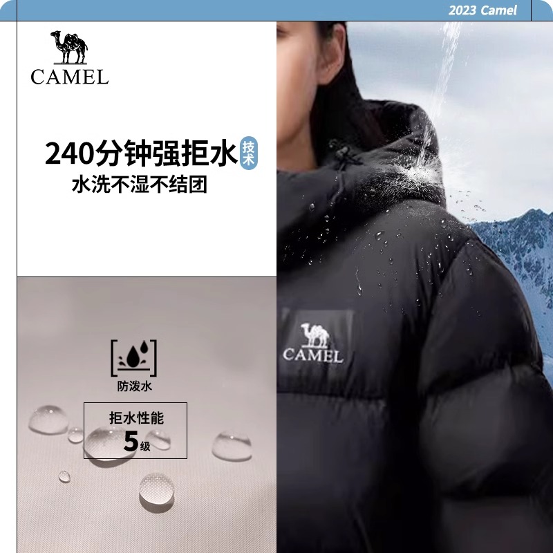 男款 女款 加厚保暖拒水绒外套 新款 骆驼黑钻5PLUS户外羽绒服冬季