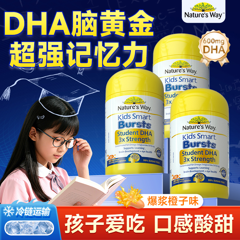 佳思敏3倍dha儿童鱼油青少年备考鱼油学生记忆力深海鱼 3瓶装