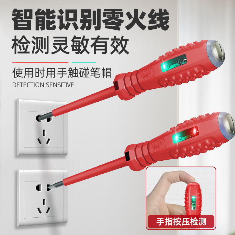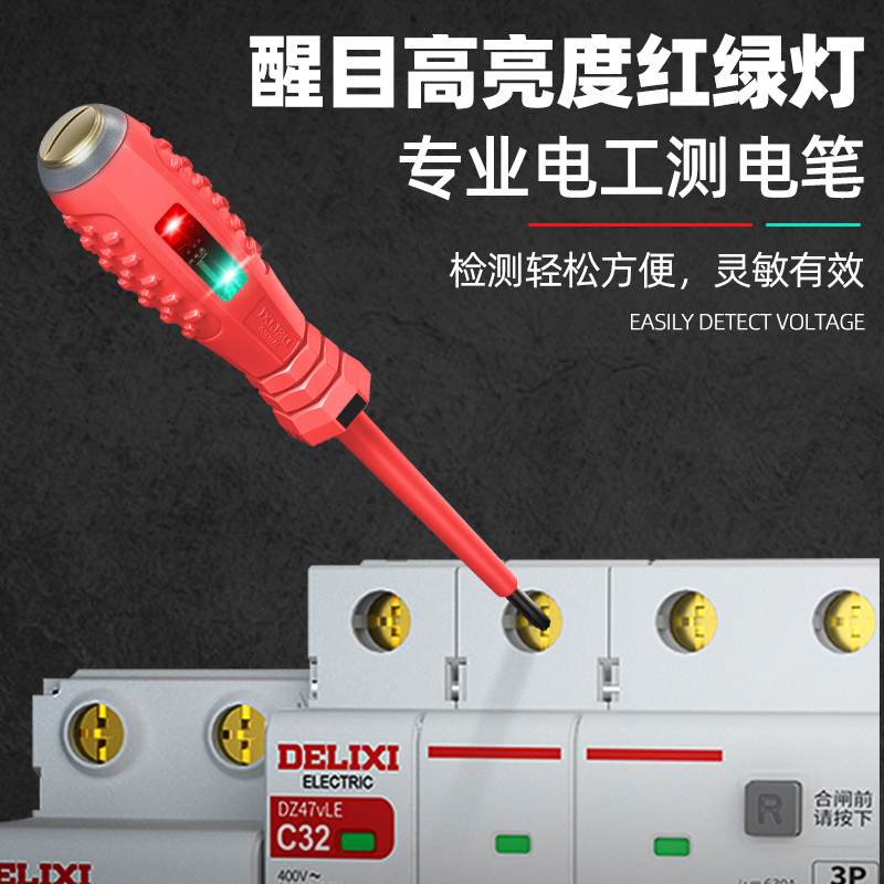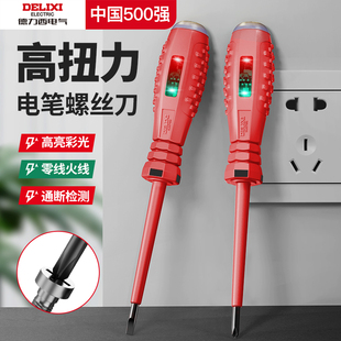 德力西电气测电笔电工专用测断线感应验电试电笔高扭力彩光电笔