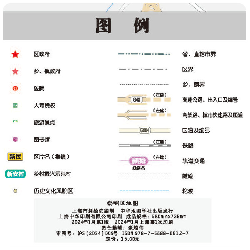 地铁站景点学校医院商厦图书馆分布情况 上海分区交通旅游便民出行指南 上海市崇明区地图 中华地图学社 上海直发