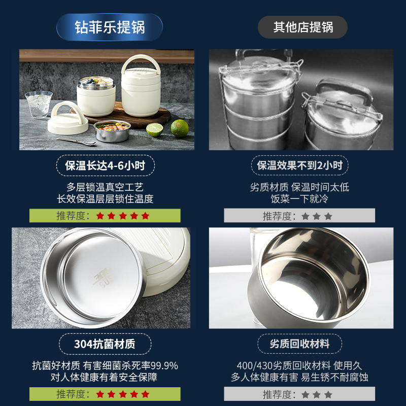 钻菲乐冬天保温桶保温盒饭桶不锈钢24小时超长保温双层手提汤壶