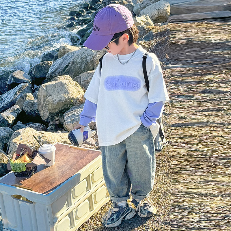打底衫 男童长袖 儿童中大童男孩春秋款 新款 上衣 T恤纯棉2025秋装