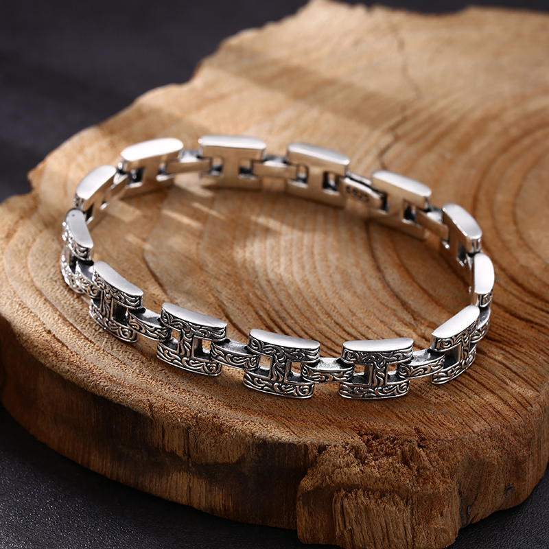 999纯银福来运转黑曜石手串男生款 平安扣双层手链生日礼物送男友