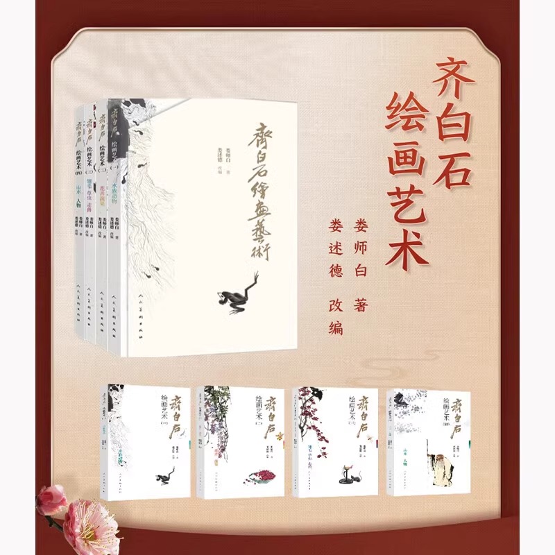 山水人物 翎毛草虫走兽 名家解读齐白石绘画理念创作方法国画入门基础教程自学画国画书籍 花卉蔬果 齐白石绘画艺术全4册水族动物