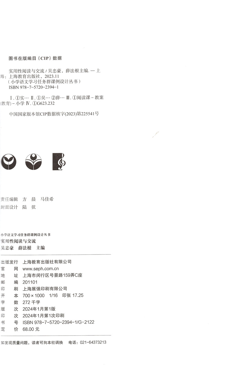 薛法根 总主编吴忠豪 小学一到六年级 扫码 社 小学语文学习任务群课例设计丛书 获取配套练习与测评上海教育出版 实用性阅读与交流
