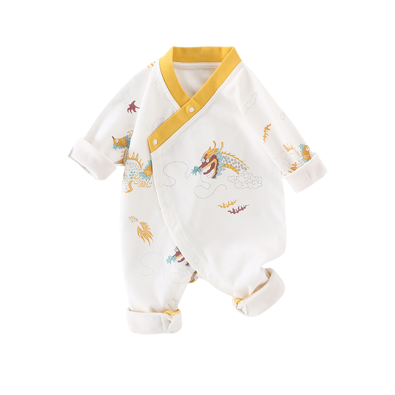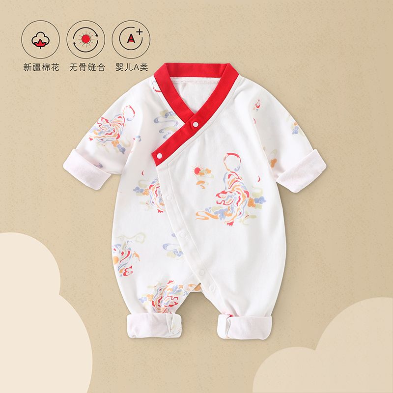 2件装 婴儿连体衣春秋纯棉哈衣中国风新生儿睡衣男女宝宝爬服超萌