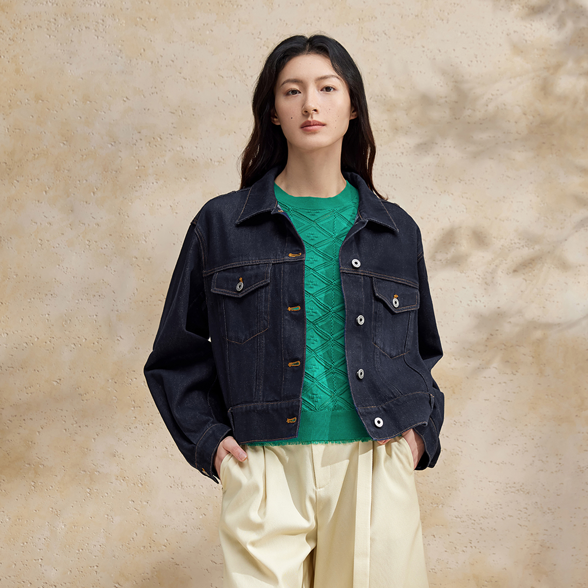 Lilbetter原牛短宽版 外套 哥萨克牛仔夹克2025秋明线设计翻领工装