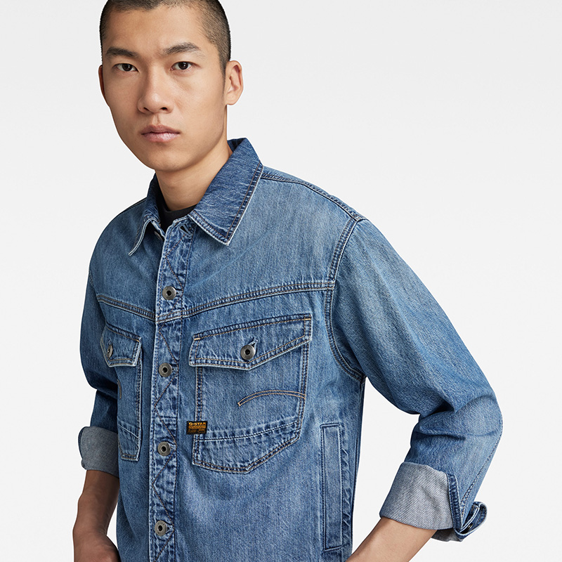 ALLIN 假两件牛仔拼接翻领外套男解构设计感cleanfit潮牌休闲夹克