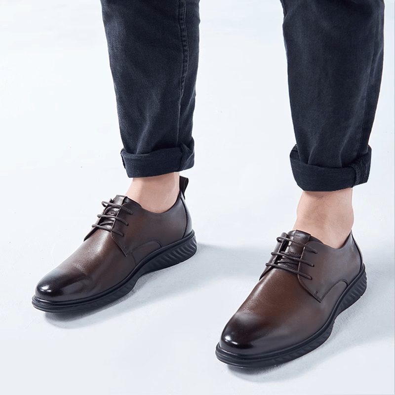 2025秋冬新款 男鞋 商务鞋 增高皮鞋 子 软底休闲系带圆头正装 奥康男鞋