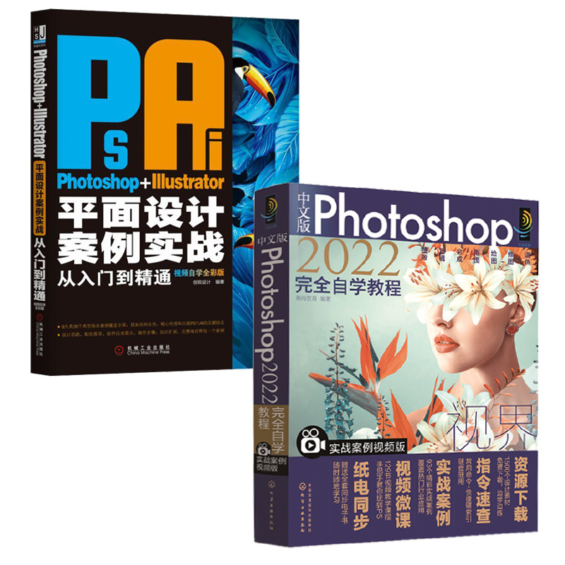ILLUSTRATOR平面设计案例实战从入门到精通 ps教程书籍 淘宝美工教程 全2册 ai平面设计教程 合成 PHOTOSHOP 修图 零基础