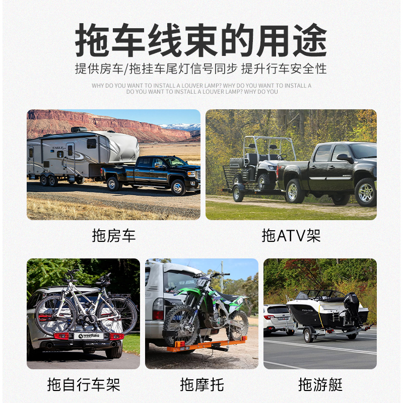 适用牧马人角斗士拖车线束拖挂房车7芯13针尾灯信号电源插座配件