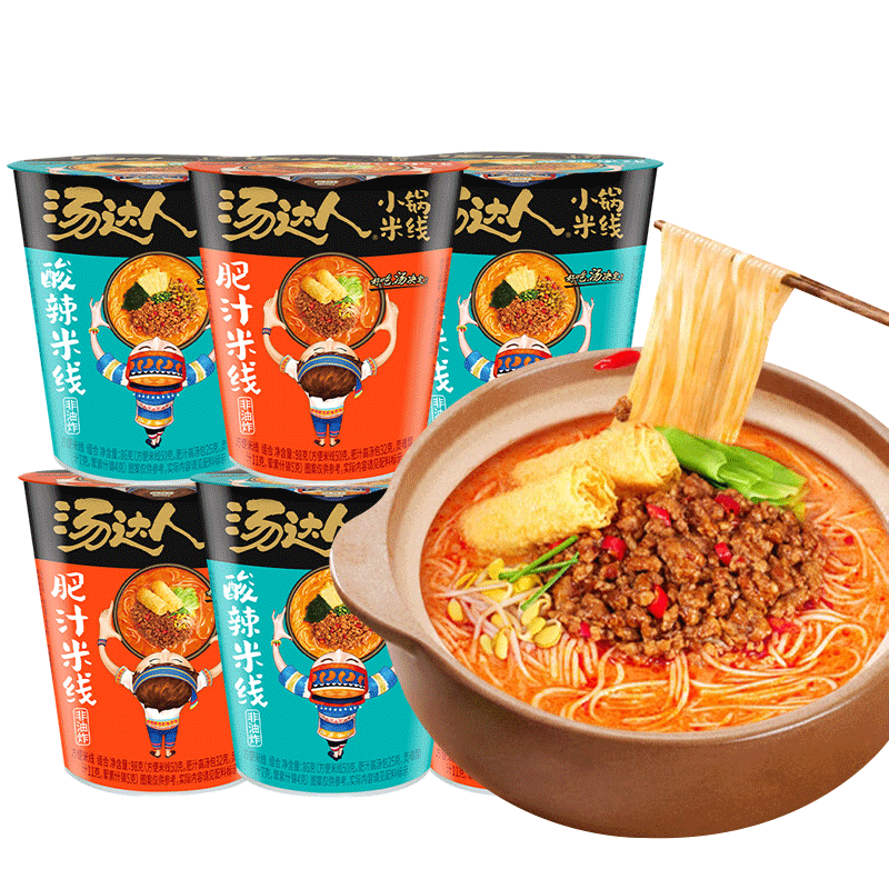 统一汤达人肥汁米线酸辣粉丝方便速食杯装 过桥米线休闲夜宵懒人