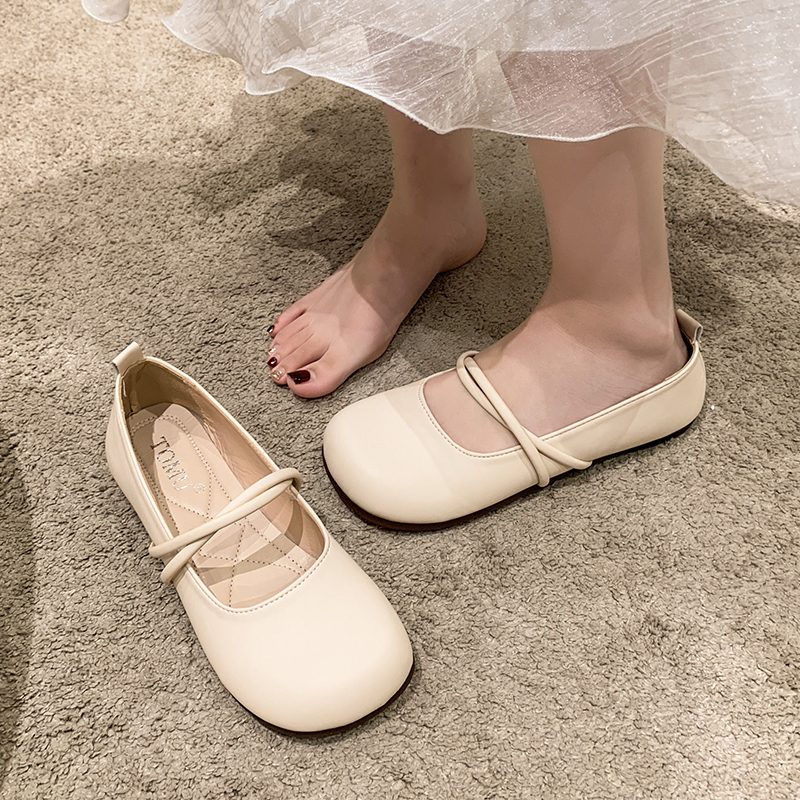 女2025春季 文艺范单鞋 新款 软底豆豆鞋 复古奶奶鞋 圆头平底玛丽珍鞋