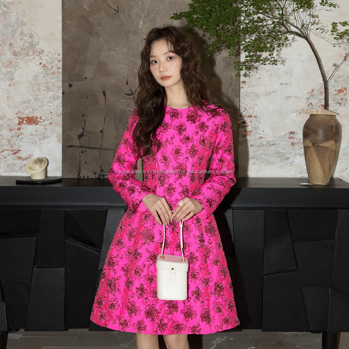 宽松领口珠片花朵裙子 新款 乐町韩系千金感连衣裙女装 2025年秋季