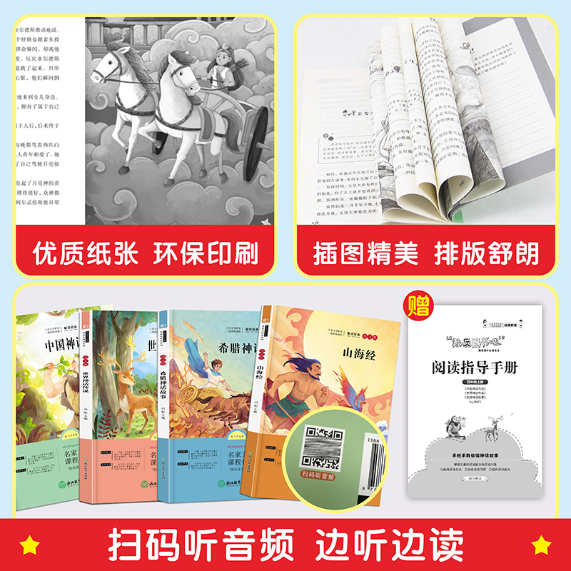 快乐读书吧四年级上下册广东新华推荐 中国神话传说 古代希腊神话故事山海经 神话与传说故事 四年级课外书必读小学课外书 世界经典
