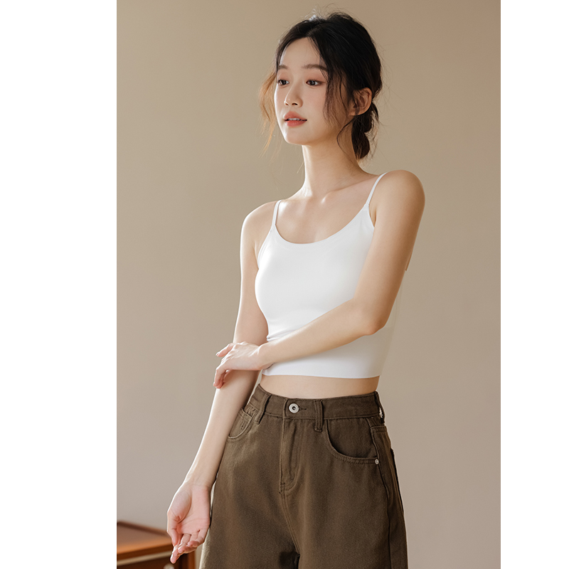 吊带背心女带胸垫2025夏季 冰丝无痕内衣白色内搭美背打底上衣 新款