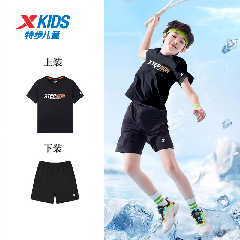 男士 夏季 跑步速干衣服短袖 短裤 回力冰丝休闲运动健身套装 男装 男款