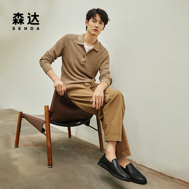 鞋 新款 乐福秋季 套脚软底真皮休闲透气皮鞋 HLA 中年鞋 海澜之家男鞋