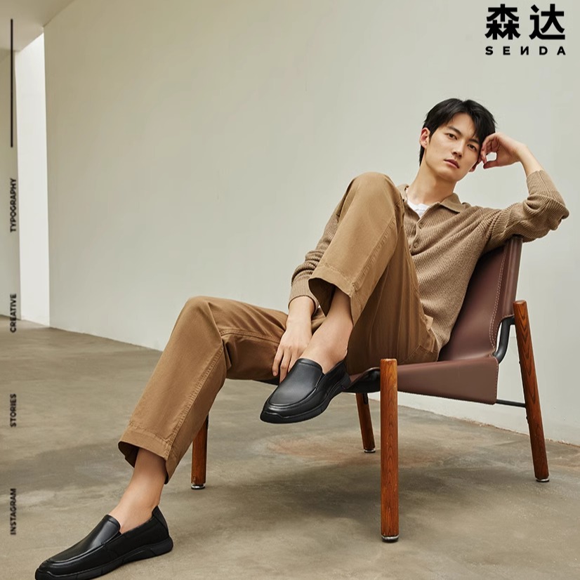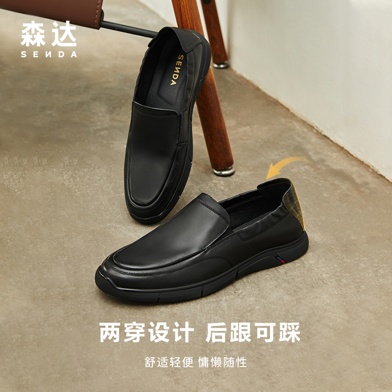 秋季 2025新款 男士 健步休闲一脚蹬皮鞋 足力健老人鞋 爸爸鞋 官方正品