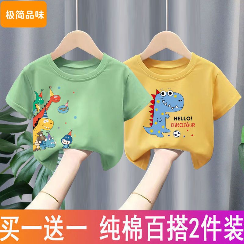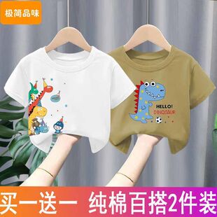 中小童帅气宝宝宽松上衣潮 新款 100%纯棉男童t恤短袖 儿童2024夏装