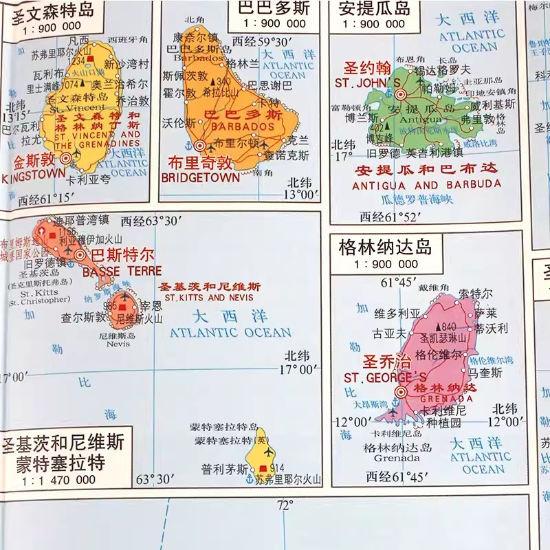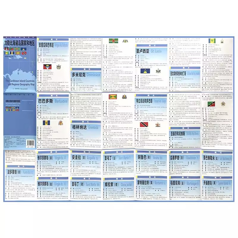 星球地图出版 双面覆膜防水折叠便携 社 60cm 加勒比海诸岛国家和地区地图世界分国地理图政区图地理概况人文历史城市景点约84