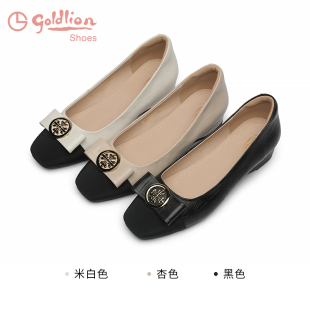 真皮通勤单鞋 拼接百搭小香风舒适坡跟浅口鞋 女 时尚 金利来女鞋