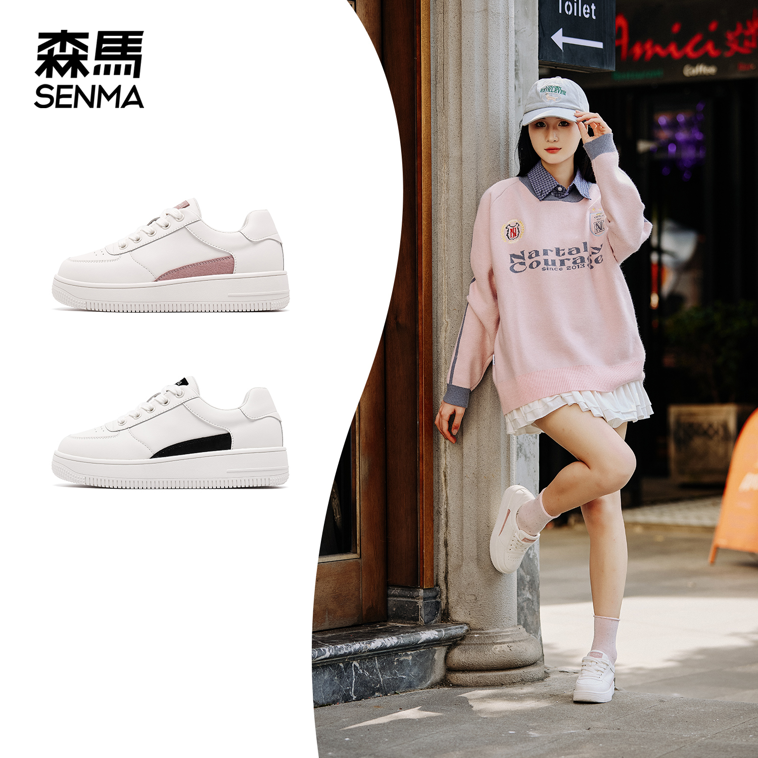 女鞋 2025春季 女松糕厚底老爹百搭运动鞋 休闲皮面防水防滑板鞋 新款