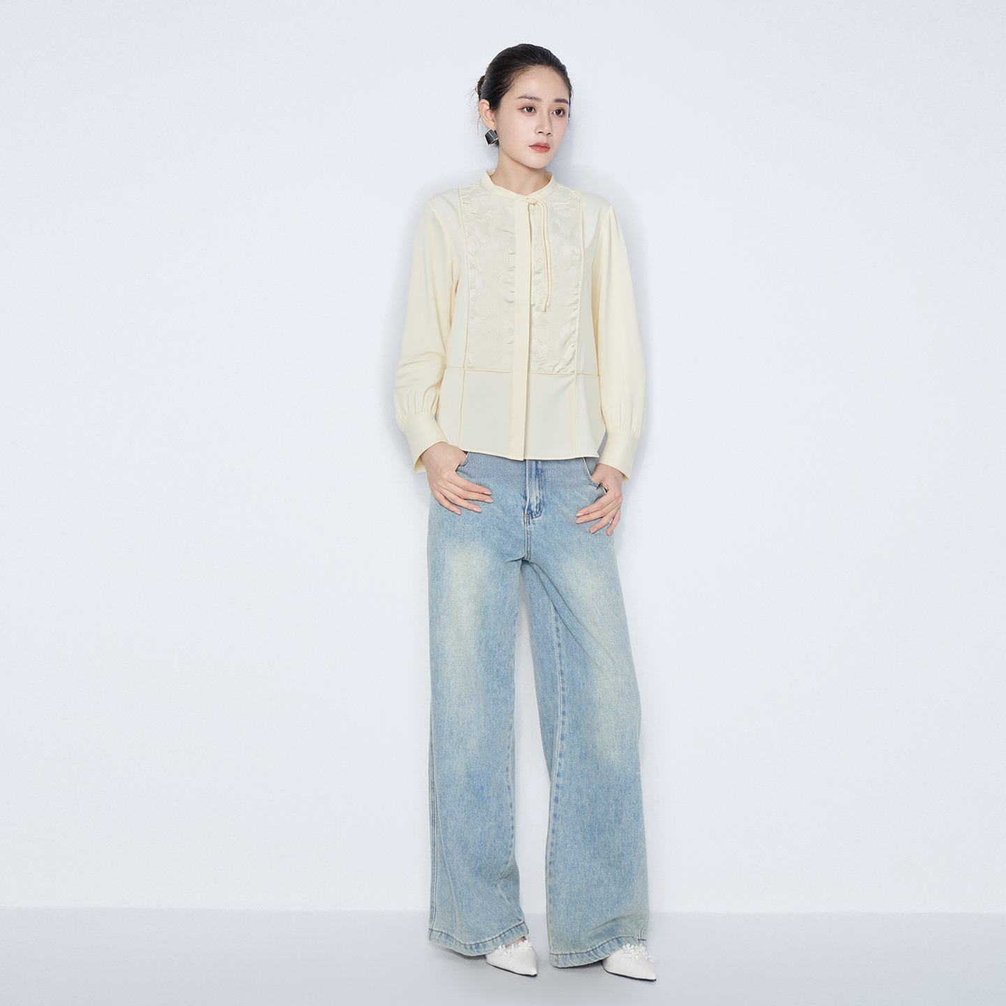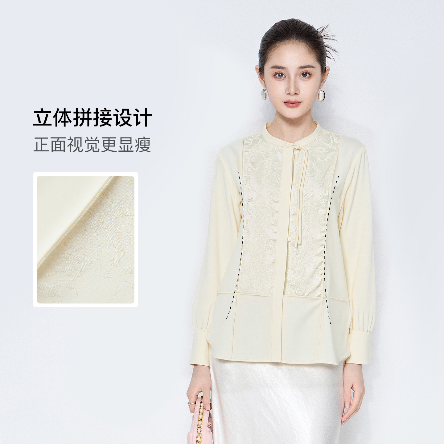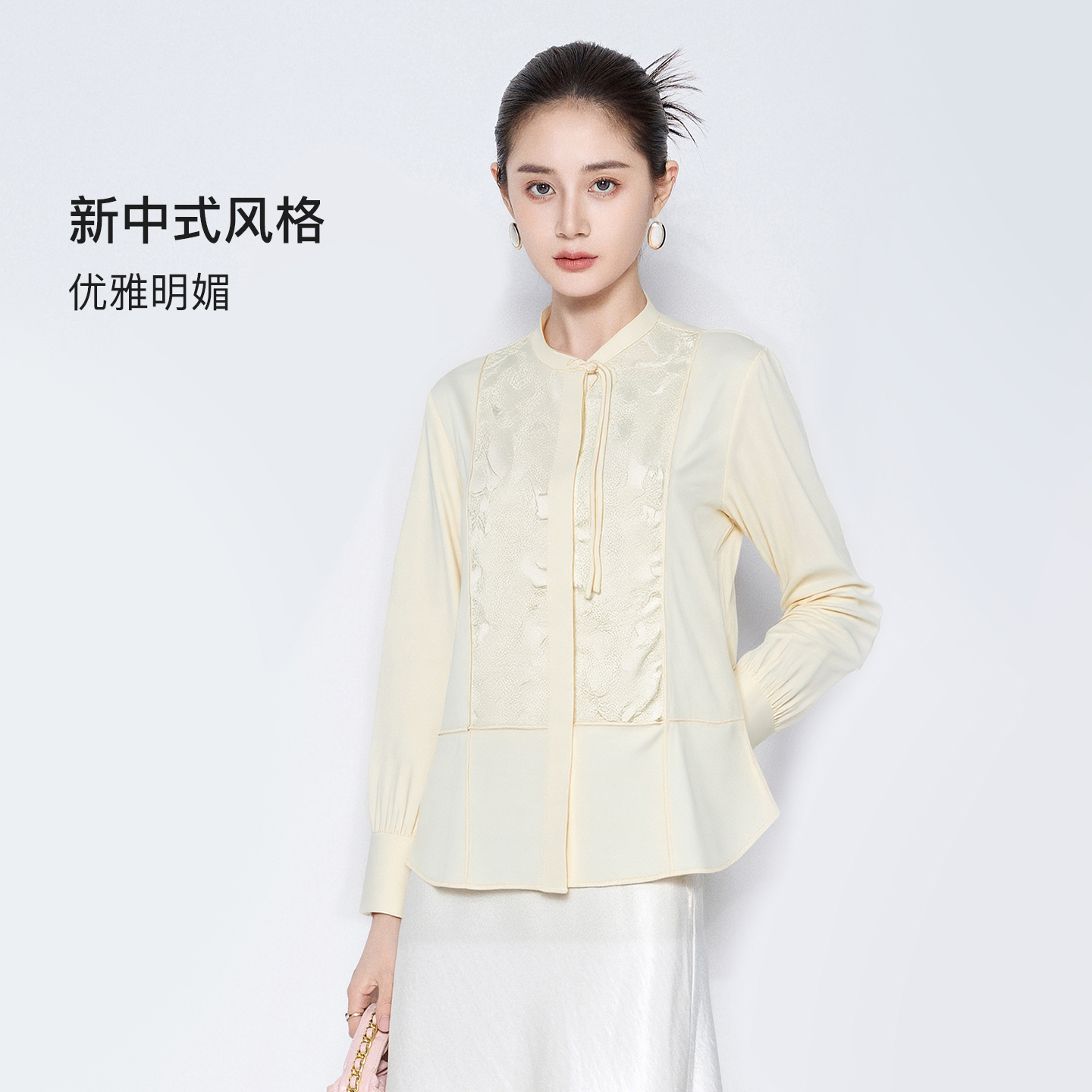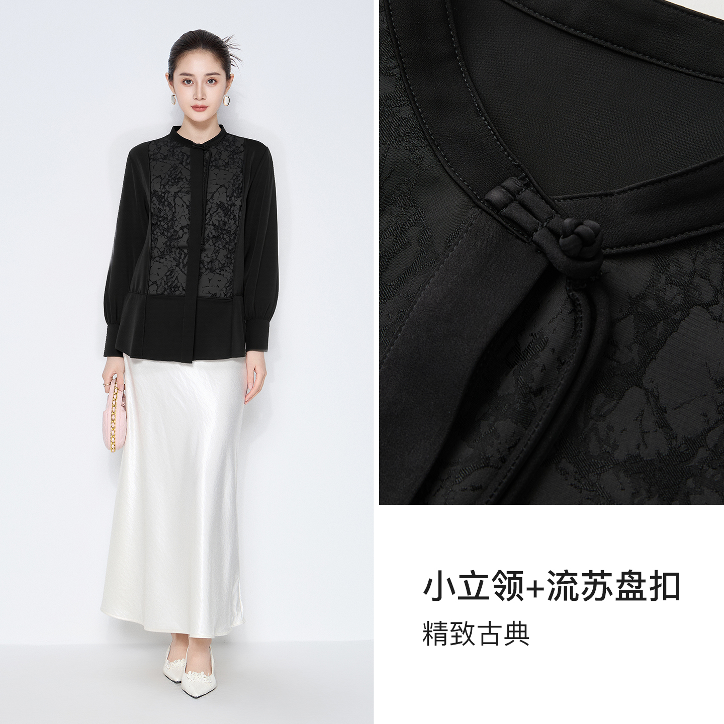 款 马天奴2025秋季 黑色圆领长袖 衬衫 立领衬衣女装 新中式 不易皱
