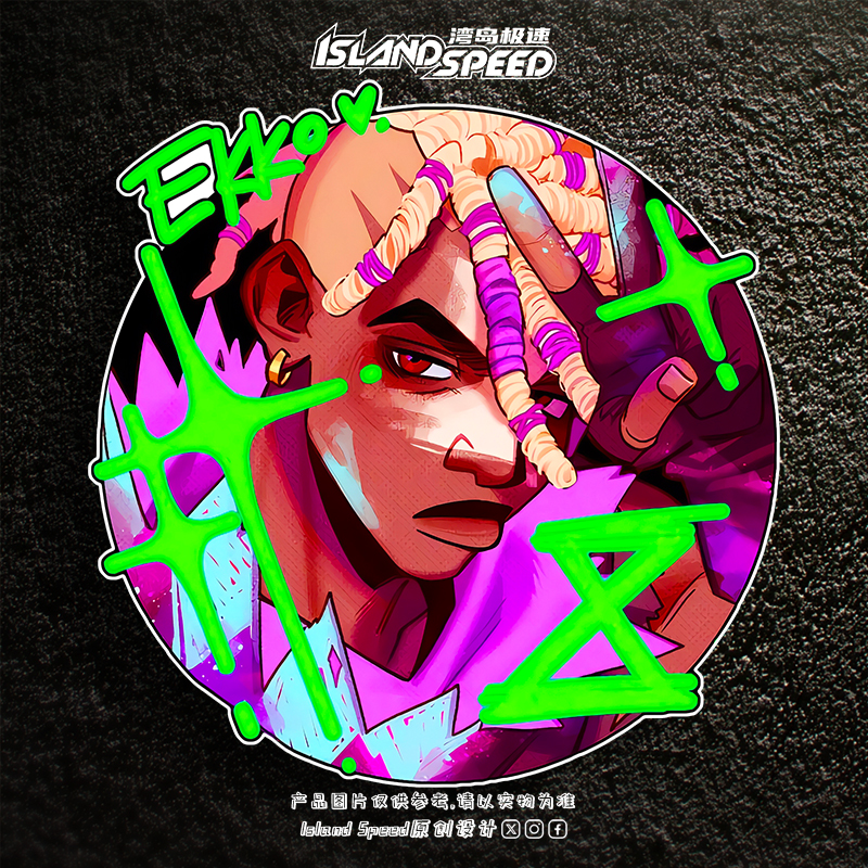 无畏契约炫酷游戏Ekko汽车贴纸创意卡通潮流车贴装 饰摩托车贴花