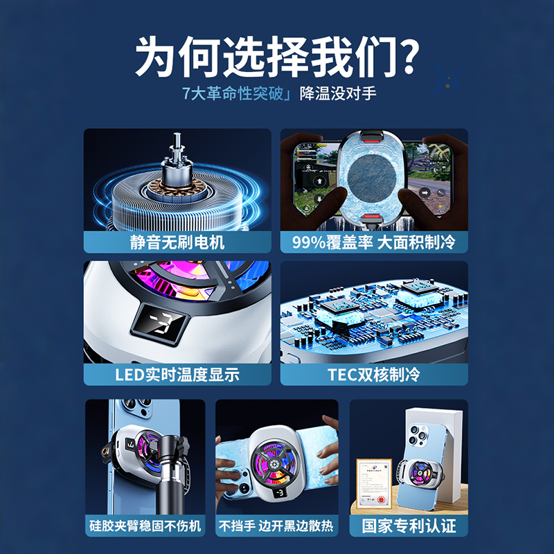 潮拍手机散热器磁吸半导体制冷适用小米苹果ipad平板一加黑鲨通用结冰静音电竞游戏直播专用降温神器2025新款