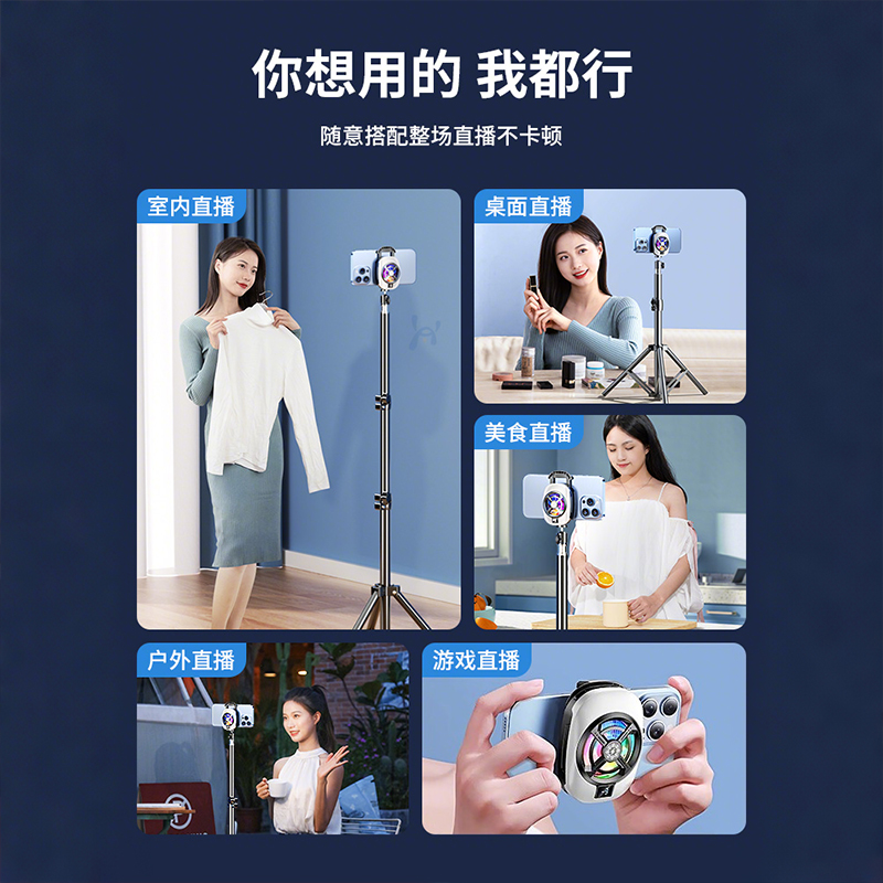 手机散热器超静音半导体制冷降温神器主播打游戏背夹冷却结冰适用黑鲨苹果一加落地直播支架 直播专用
