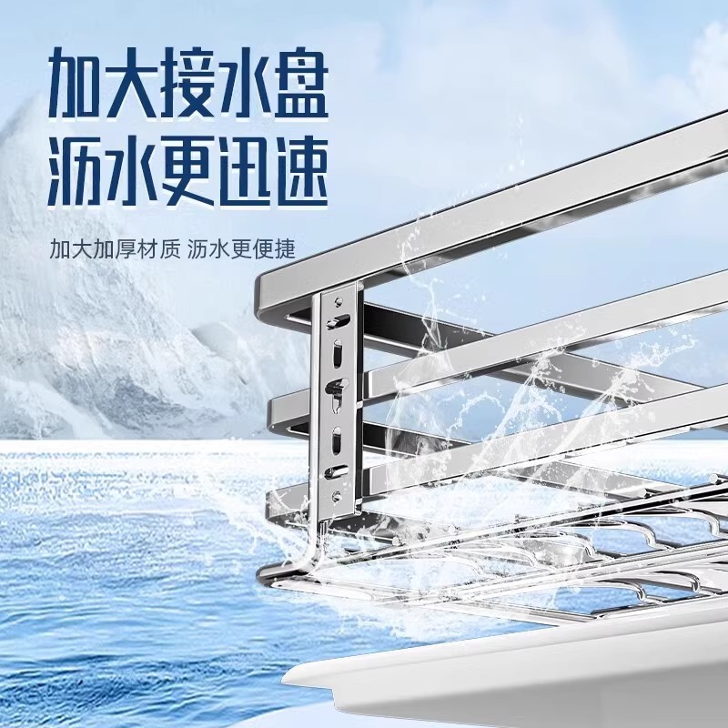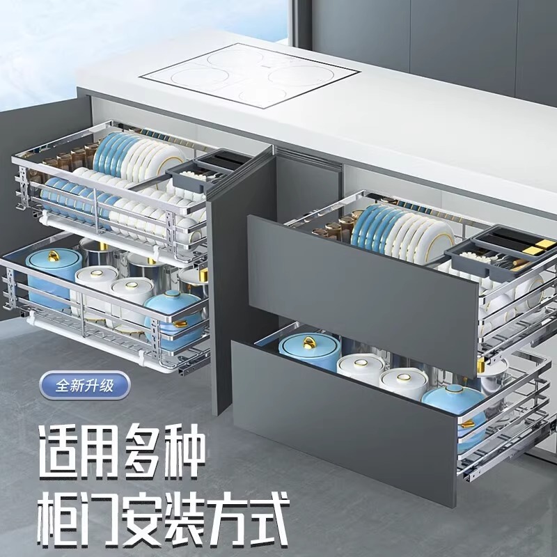 304不锈钢拉篮厨房橱柜双层抽屉式 柜内加深放碗碟架内置收纳碗篮