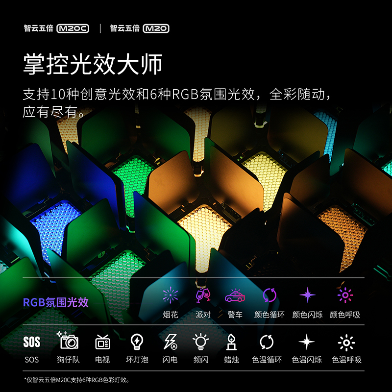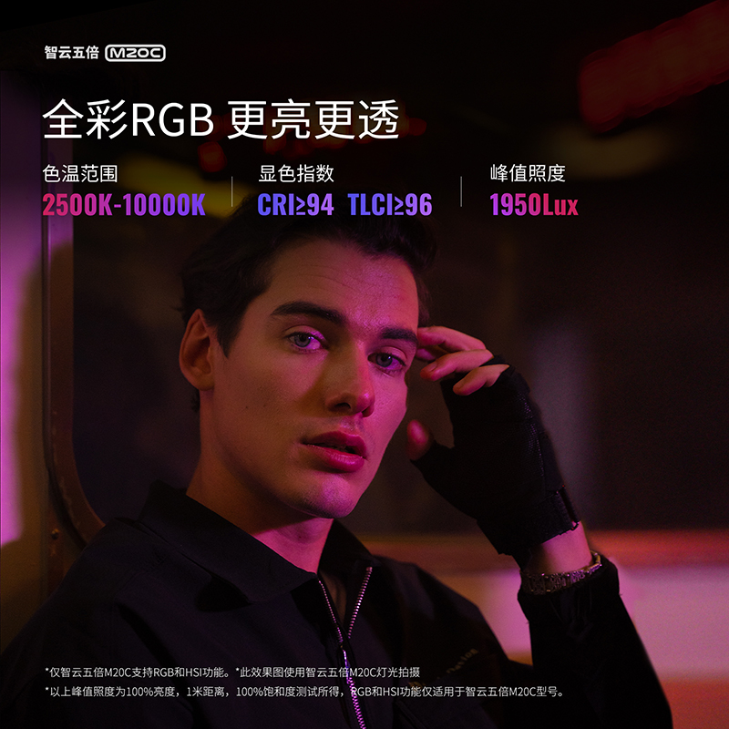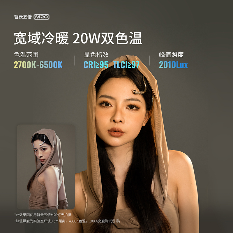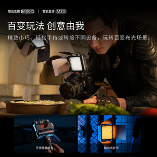 ZHIYUN智云五倍M20C口袋补光灯便携式 相机热靴打光灯直播桌面夹手机自拍磁吸LED美颜豆腐灯美食专用常亮灯20w