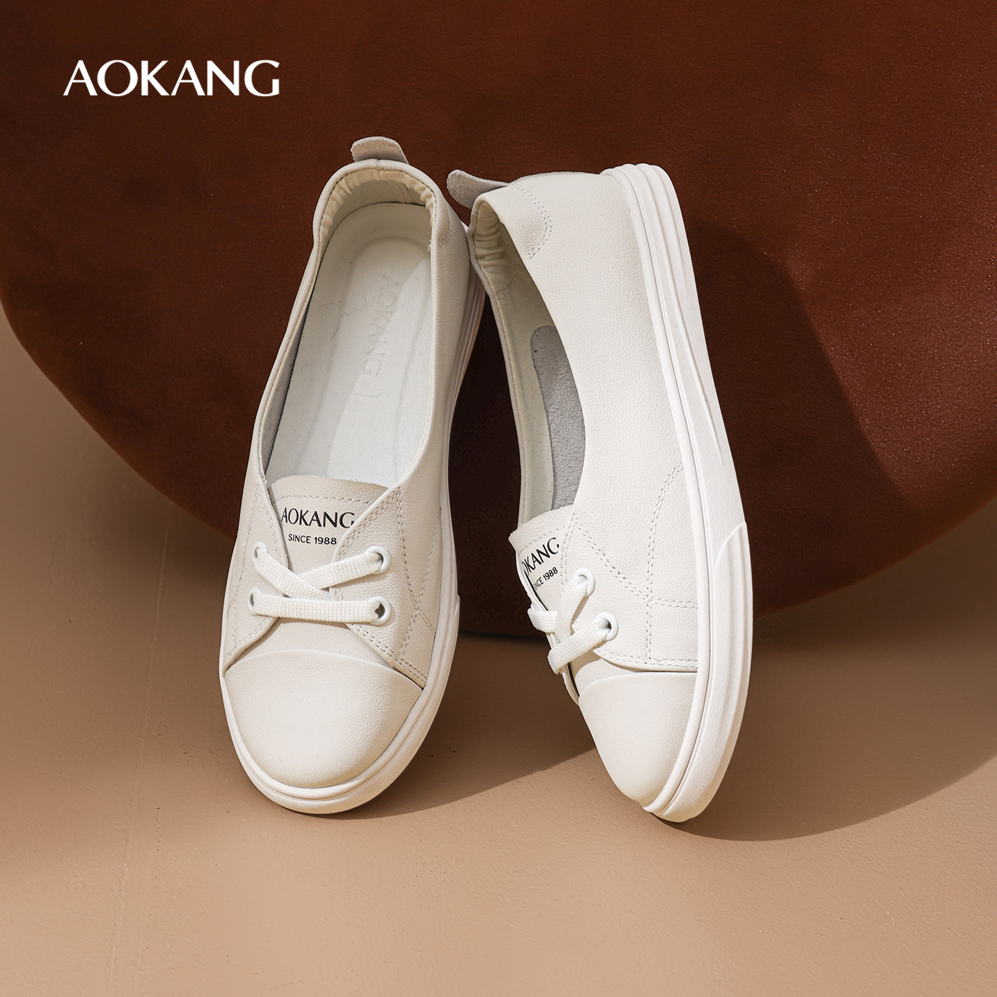 新款 2025秋季 真皮舒适软底小白鞋 时尚 奥康 休闲浅口单鞋 女鞋