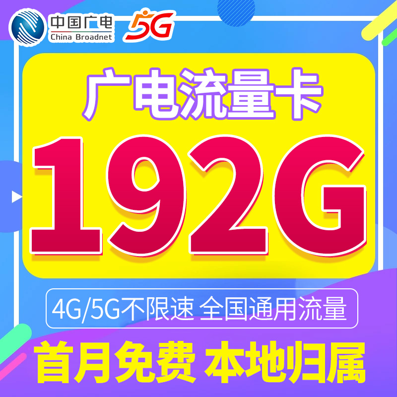 广电流量卡大流量无线纯上网5G全国通用套餐升卿卡双百手机电话卡