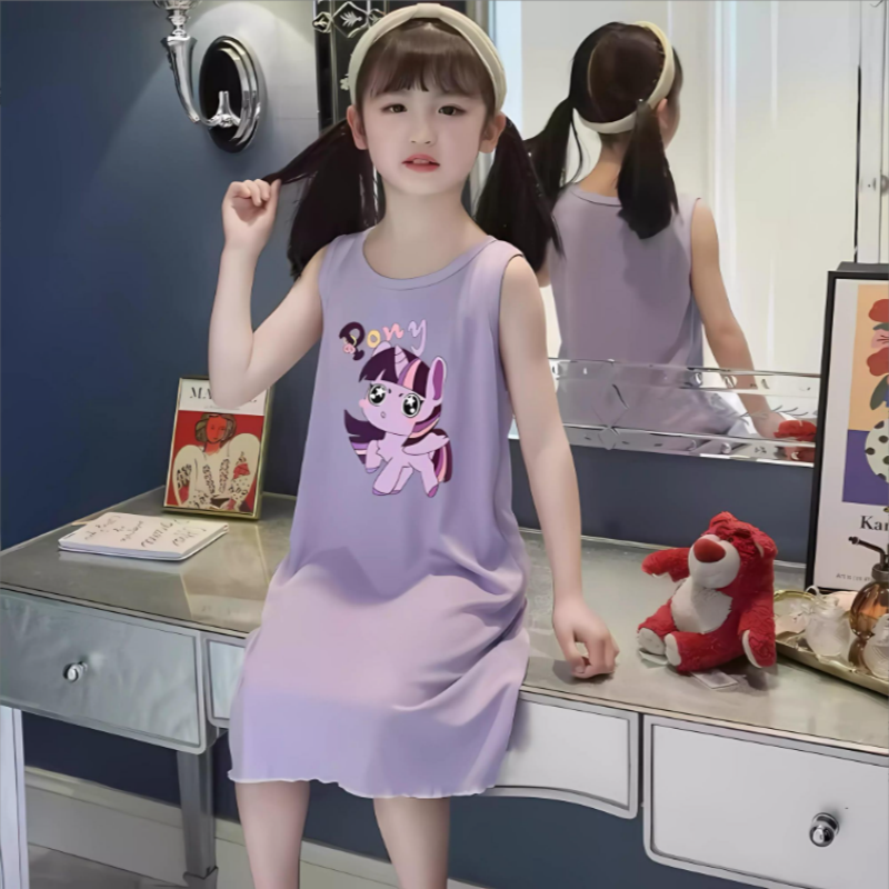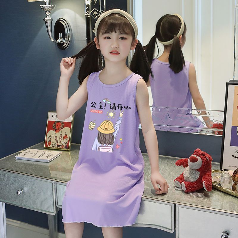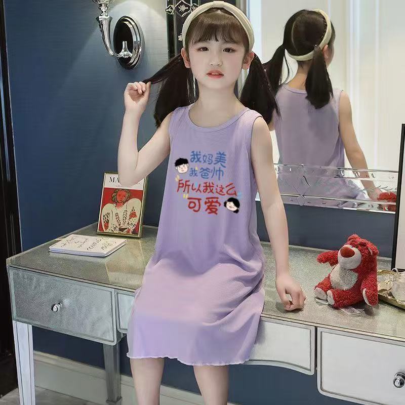 2025新款 背心裙卡通睡衣裙母女亲子家居服 女孩冰丝莫代尔女童夏季