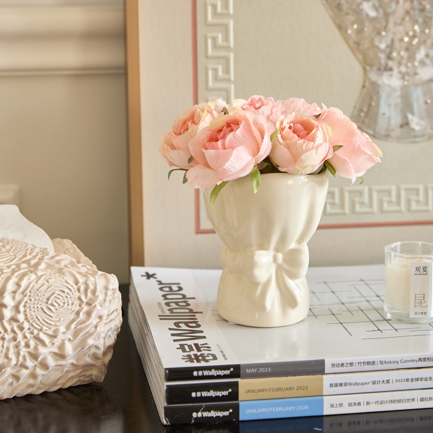 手捧花束陶瓷花瓶仿真花假花家居创意装 饰品客厅玄关插花餐桌摆件