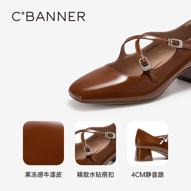 红色玛丽珍鞋 法式 百思图莫奈花园25秋新款 女单鞋 乔欣明星同款