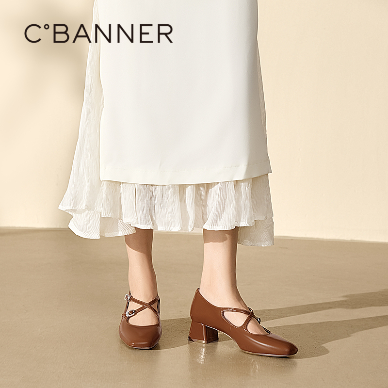 女 羊皮芭蕾玛丽珍单鞋 董洁董璇小酒窝同款 真美诗摩卡慕斯25秋新款