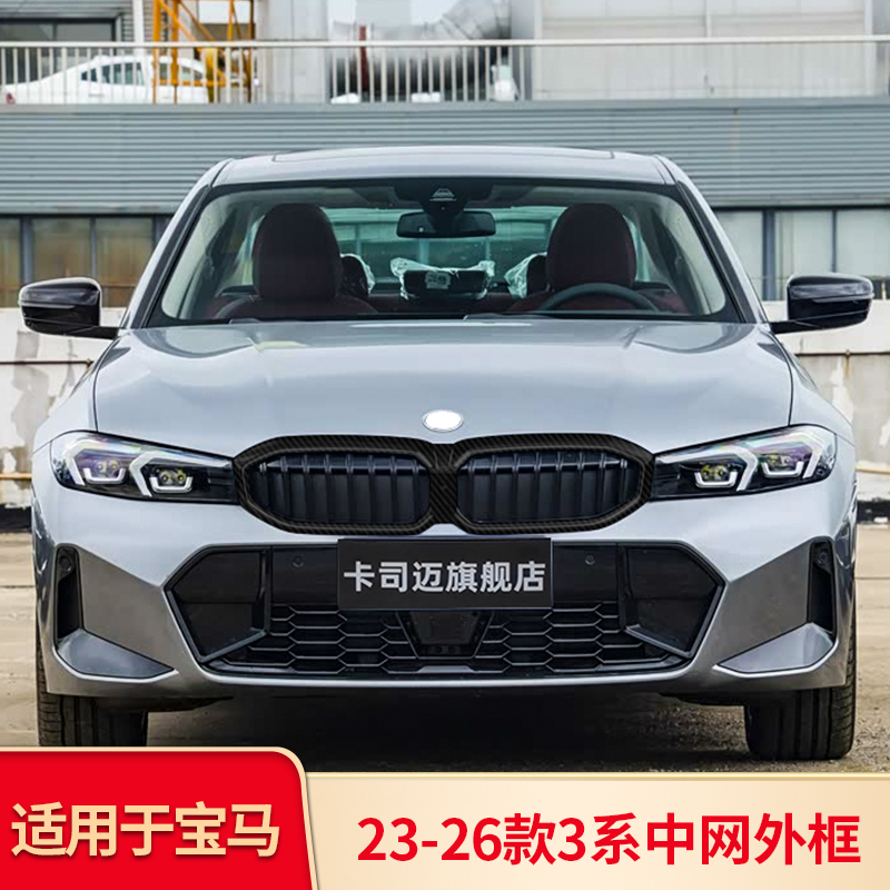 适用宝马3三系i3黑武士改装 中网外框黑化黑色中网前唇前包角护角