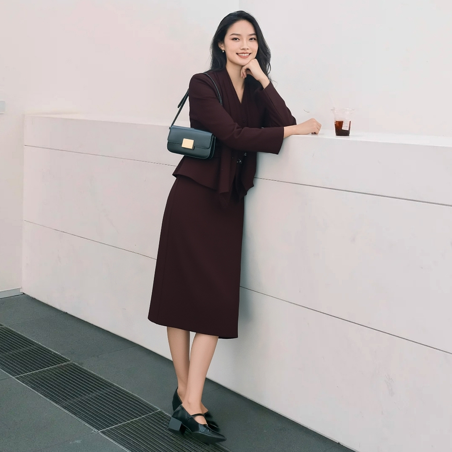图曼朵法式 长裙 黑色背心裙秋通勤温柔高知穿搭教师面试连衣裙套装