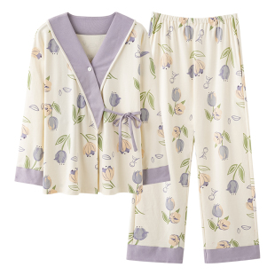 猫人月子服带胸垫产后哺乳睡衣女怀孕期孕妇喂奶云朵棉家居服套装