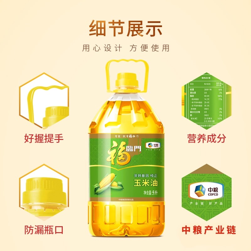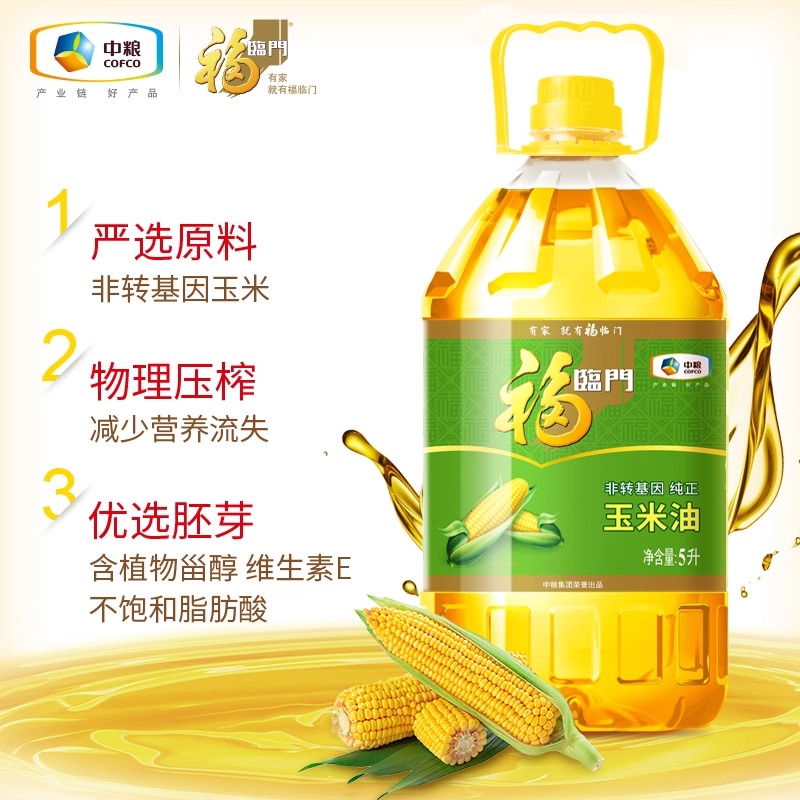 福临门非转基因压榨一级纯正玉米油5L大桶装 中粮健康家用食用油