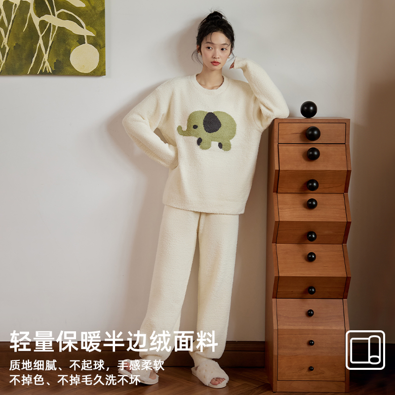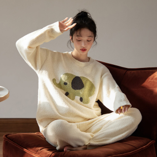 可外穿 保暖家居服半边绒圆领休闲套装 睡衣女加绒加厚冬季 2025新款