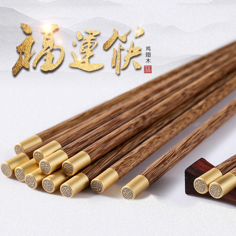 高档鸡翅木筷子家用实木无漆无蜡商用防滑耐高温公筷家庭木质快子